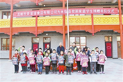 据了解,此次高邮市美滋滋食品有限公司为米脂贫困家庭学生捐赠爱心书包400个,让孩子们在寒冷的冬天感受到来自社会大家庭的温暖和关爱。不少获赠学生表示,要更加勤奋学习,用优异的成绩回馈社会、报效国家。